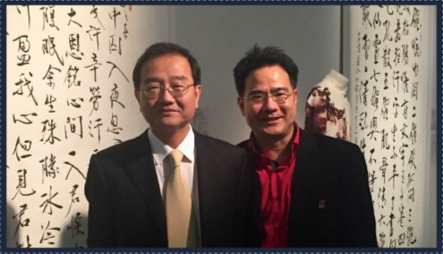 这四道工序其实都是桥梁工作。第一道,是语言之间的桥梁。第二道,古今之间的桥梁。第三道,文学和艺术之间的桥梁。第四道,文明之间的桥梁。但我为什么说是五道工序?因为这件作品后来跟另外一件,卢仝的《七碗茶诗》一道,在法国展出。这是一道文化交流的工序。可以说是国家与国家之间的桥梁。大家可以看到在法国展出时的场景。