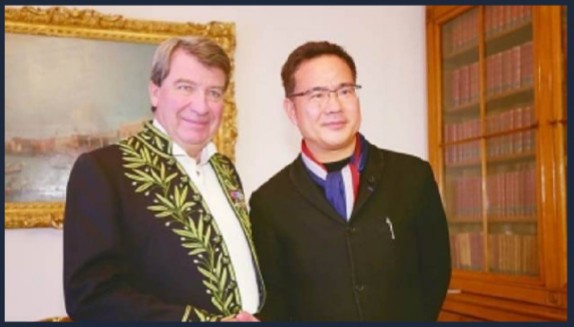 这是当时与我国驻法使馆公使,法国总理夫人,东方吉美博物馆的馆长,罗丹博物馆的馆长,还有我们北大校友、企业家黄怒波的合影。