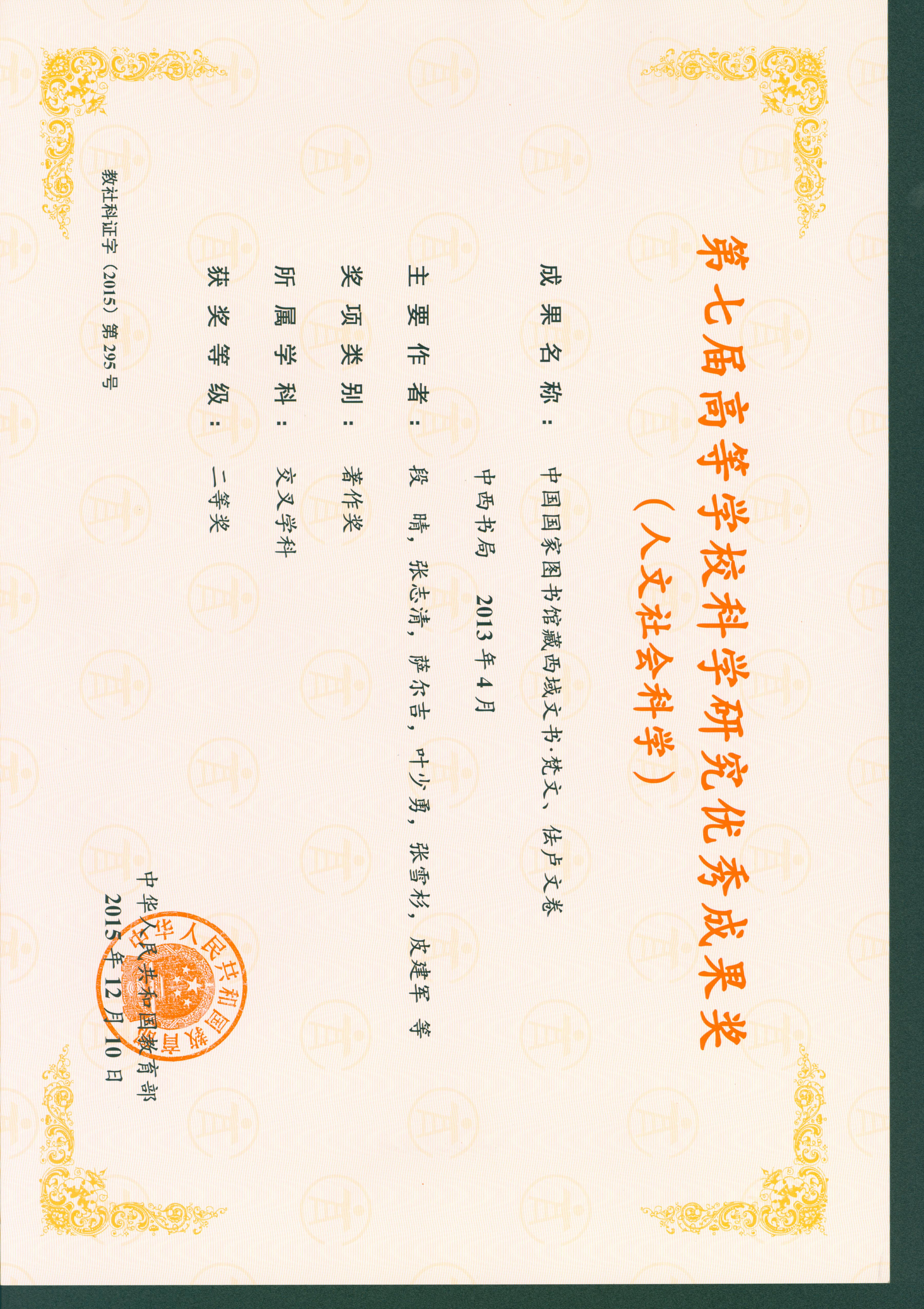 第六届教育部高校科学研究优秀奖:4项。获奖时间:2013年3月22日