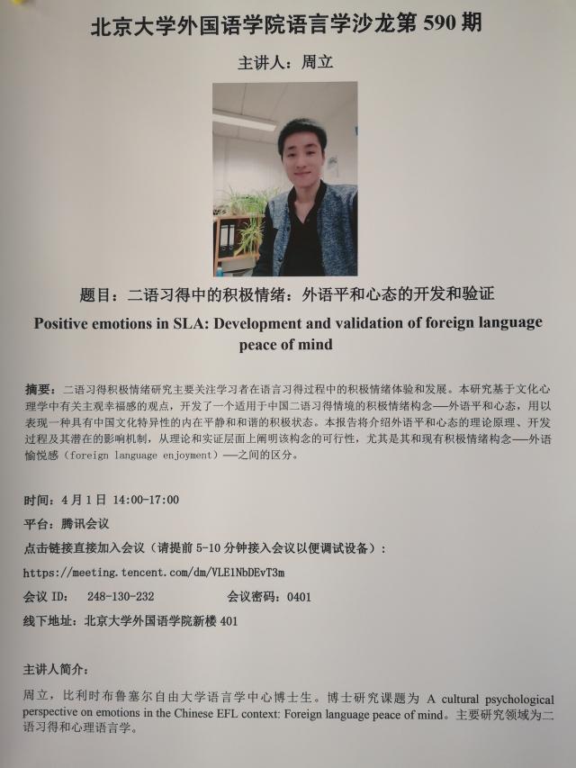 华体会平台语言学沙龙第590期 二语习得中的积极情绪:外语平和心态的开发和验证