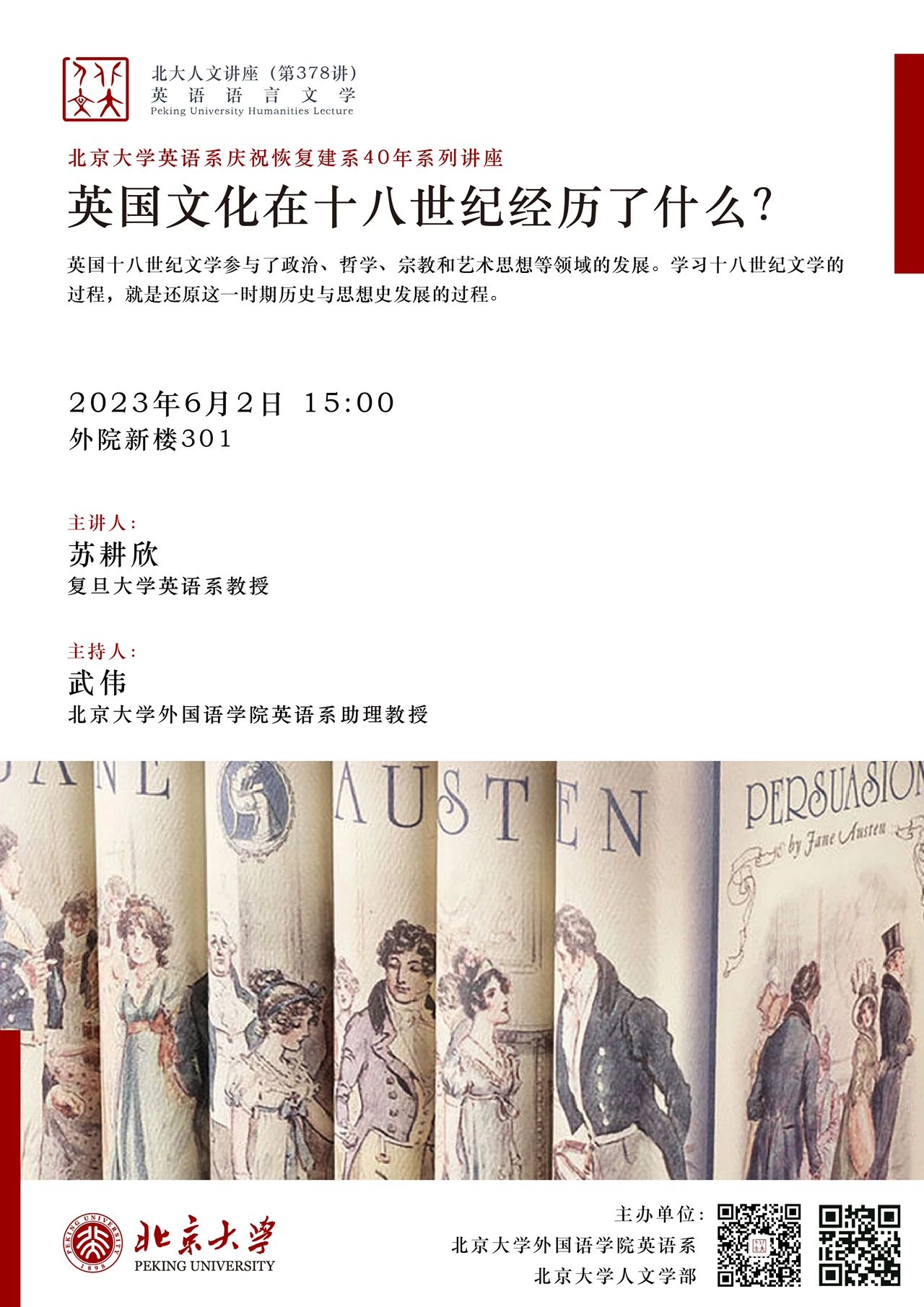 北京大学英语系庆祝恢复建系40年系列讲座:英国文化在十八世纪经历了什么?