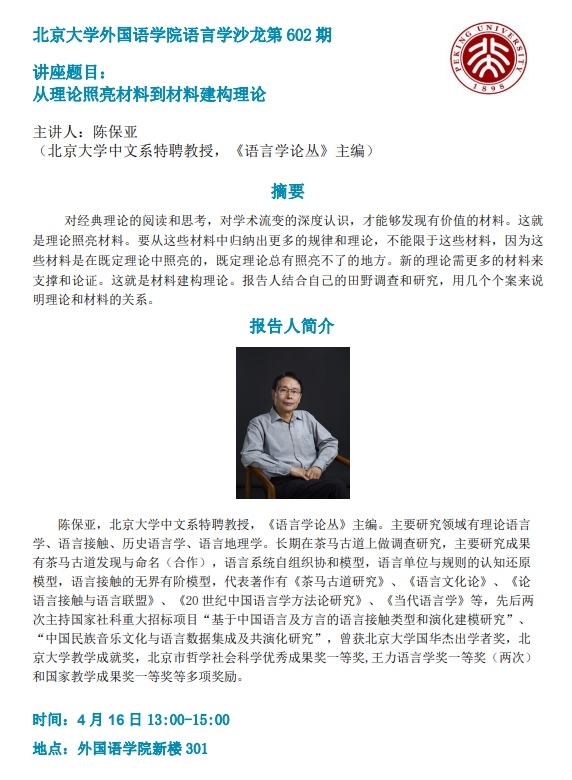华体会平台语言学沙龙:从理论照亮材料到材料建构理论