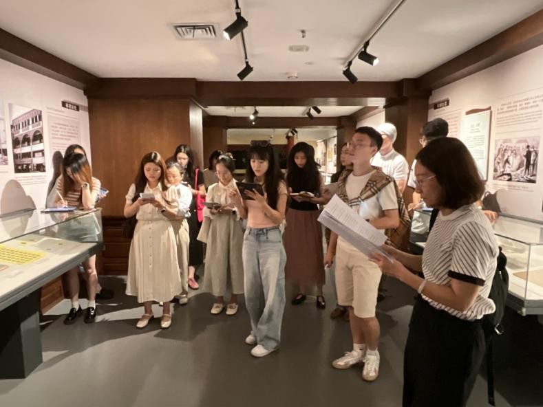 5月29日上午,华体会平台东南亚系泰语专业19名师生前往中国华侨历史博物馆开展联合实践教学活动,主要依托馆内南洋华侨华人文物及史料,开展了多模态翻译实训、口译情景模拟及文学-社会历史交互学习教学实践,以深化“泰语翻译教程”、“泰语高阶口译研究与实践”及“泰国文学史”三门专业必修课程的思政维度。本次教学活动由东南亚系泰语专业主任熊燃助理教授与万悦容副教授共同带队,参与学生涵盖本、硕两个培养层次共17人。