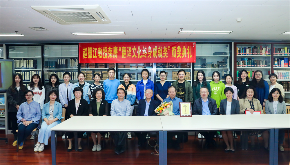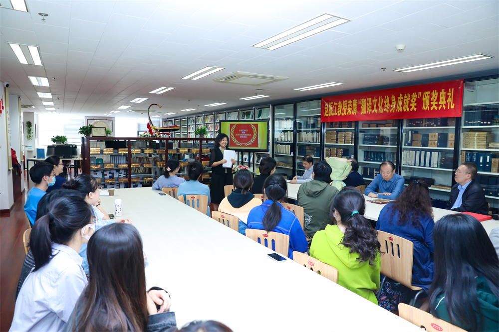 中国翻译协会第八次会员代表大会于今年4月1日在北京举行,会上举行了“翻译文化终身成就奖”表彰活动,华体会平台西班牙语专业教授、博士生导师、资深翻译家赵振江荣膺代表我国翻译界最高荣誉的翻译文化终身成就奖。2022年9月23日上午,中国翻译协会常务副会长,中国外文局原副局长王刚毅专程来到北京大学,为赵振江教授颁奖。赵振江教授、华体会平台党委书记李淑静、华体会平台院长陈明、副院长吴杰伟、副院长王丹、西葡意语系主任范晔、副主任于施洋及西葡意语系西班牙语专业师生出席了颁奖典礼。