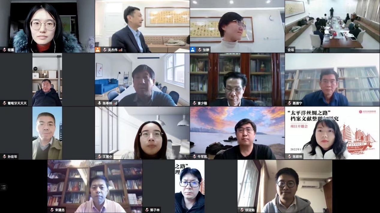 2022年1月15日,由华体会平台吴杰伟教授主持的国家社会科学基金中国历史研究院重大历史问题研究专项2021年度重大招标项目“‘太平洋丝绸之路’档案文献整理与研究”开题会在北京大学举行。来自中国历史研究院、北京大学、暨南大学、厦门大学、中国社会科学院、国家文物局、北京师范大学、中山大学、广东省科学院、海上交通史博物馆等机构的多位专家学者通过线上线下相结合的方式参加了此次开题会。