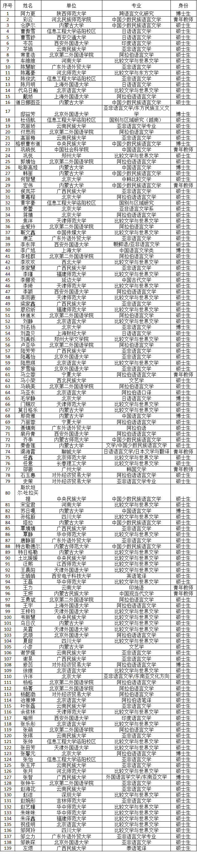 暑期学校录取名单