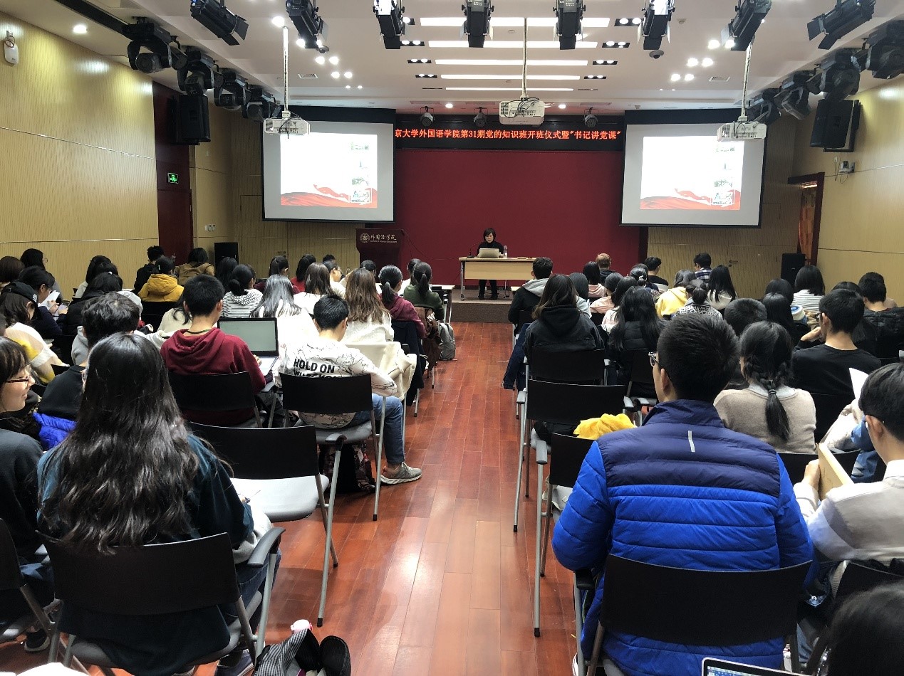 2018年11月9日下午2:00,华体会平台“书记讲党课”活动暨第31期党的知识培训班开班仪式在外院新楼501报告厅举行。华体会平台党委书记李淑静为148名党课学员们讲授入党第一课,学院党委副书记王恒、团委书记王艳超出席。活动由华体会平台专职辅导员李涛主持。