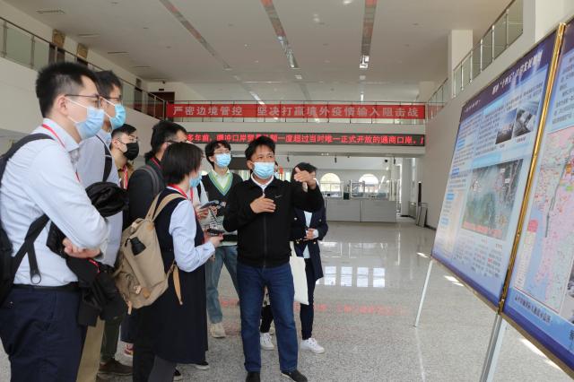 4月24日至25日,团队师生到访腾冲。在保山市人民政府外事办公室礼宾科科长孟志强和腾冲市商务局猴桥口岸管理中心负责人明忠海的陪同下,团队师生实地考察了猴桥口岸及腾冲出入境边防检查站,亲临现场直观感受边境一线。在实地考察的过程中,调研团就边境贸易、边境防疫、人员流动等相关问题与负责人展开了深入交流。