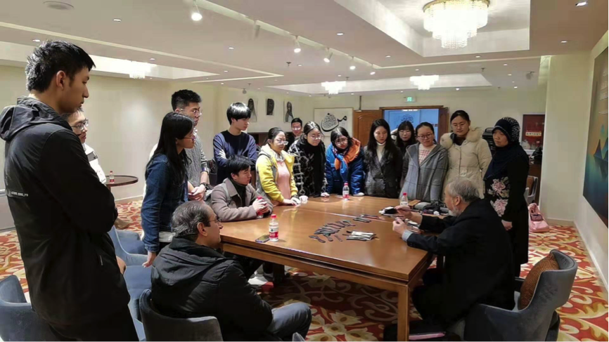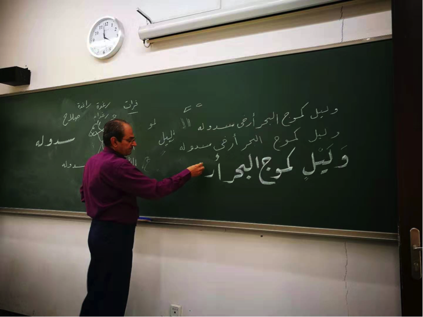 该课程由叙利亚籍外教哈穆德教授与华体会平台付志明教授共同负责,哈穆德教授在日常课程中负责教授字体的书写练习,付志明教授则负责提供意见,联系专业书法家对选课学生进行针对性的答疑解惑。