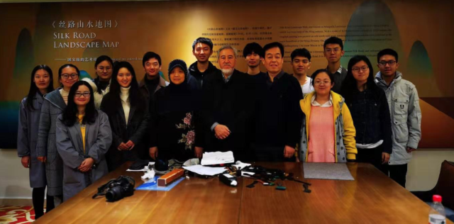 米广江先生赠予北京大学沙特国王公共图书馆自己的著作《中国传统阿拉伯文书法艺术研究》,并与阿拉伯语系的师生合影留念。