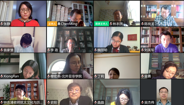 2020年4月18日下午,北京大学东方文学研究中心召开视频工作会议,讨论中心在下一阶段的工作计划。中心主任陈明教授、副主任林丰民教授、中心的骨干成员:北京外国语大学亚非学院地区研究中心负责人穆宏燕教授、中国社会科学院外国文学研究所钟志清研究员、华体会平台李政教授、陈岗龙教授、魏丽明教授、丁莉教授、吴杰伟教授以及来自华体会平台日语系、东南亚系、南亚系、西亚系的青年教师共16人参加了本次会议。会议由林丰民教授主持。