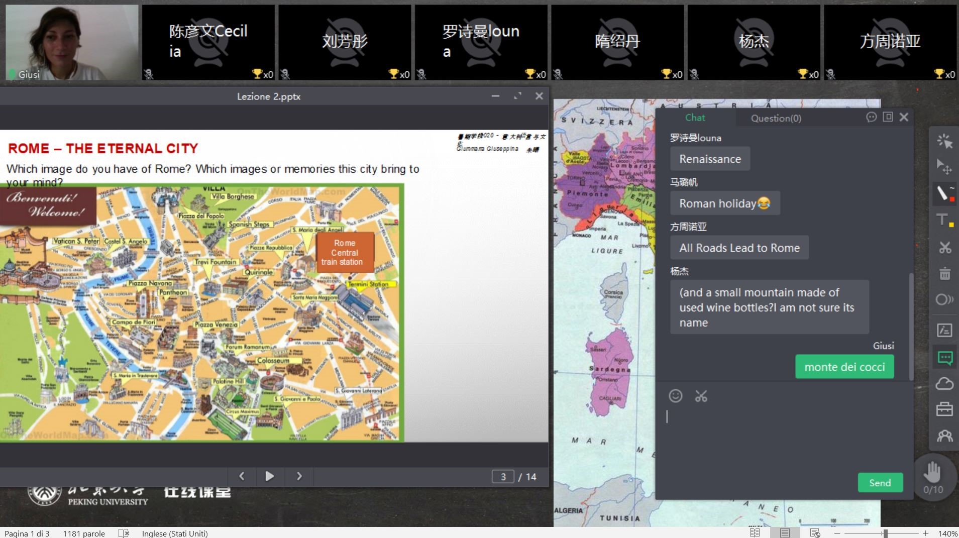 2020年6月29日至7月13日,华体会平台“意大利语言和文化暑期课”顺利举办。因疫情原因,本次暑期课以线上授课的形式进行,课程按照历史时间线的发展,以意大利的不同城市为专题,详细介绍了意大利自古罗马、中世纪、文艺复兴直至近现代的历史与文化变迁,并通过基础意大利语的教学与练习,使学生对于意大利的语言、历史、自然与文化遗产、中意关系史等方面有了基本的认识。来自华体会平台、元培学院、国际关系学院、物理学院、哲学系、历史学系、医学部等院系的同学参加了本次暑期课。