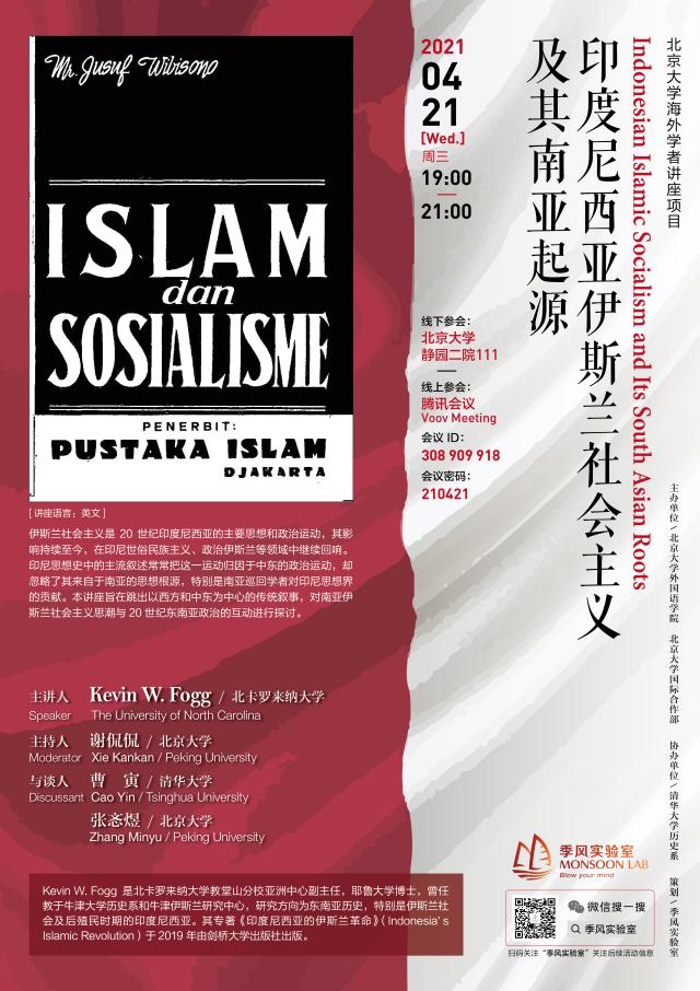 2021年4月21日,华体会平台在国际合作部“海外学者讲座项目”的支持下举办了题为“印度尼西亚伊斯兰社会主义及其南亚起源”的讲座。主讲人Kevin William Fogg博士是北卡罗来纳大学教堂山分校亚洲中心副主任。Fogg博士曾任教于牛津大学历史系和牛津伊斯兰研究中心,研究方向为东南亚历史,特别是伊斯兰社会及后殖民时期的印度尼西亚。其专著《印度尼西亚的伊斯兰革命》(Indonesia’s Islamic Revolution)于2019年由剑桥大学出版社出版。