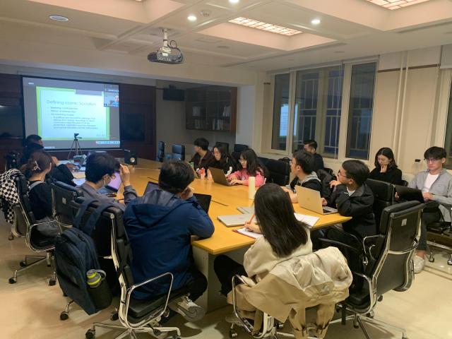 受疫情影响,Fogg博士未能到达燕园现场,因此讲座以线上线下相结合的方式进行,部分北京大学师生在静园二院与Fogg博士连线互动,同时还有众多校内外学者和同学在线上进行观看、学习并积极参与讨论。讲座由外院东南亚系助理教授谢侃侃主持,与谈人分别是清华大学历史系副教授曹寅和外院国别和区域研究专业助理教授张忞煜。