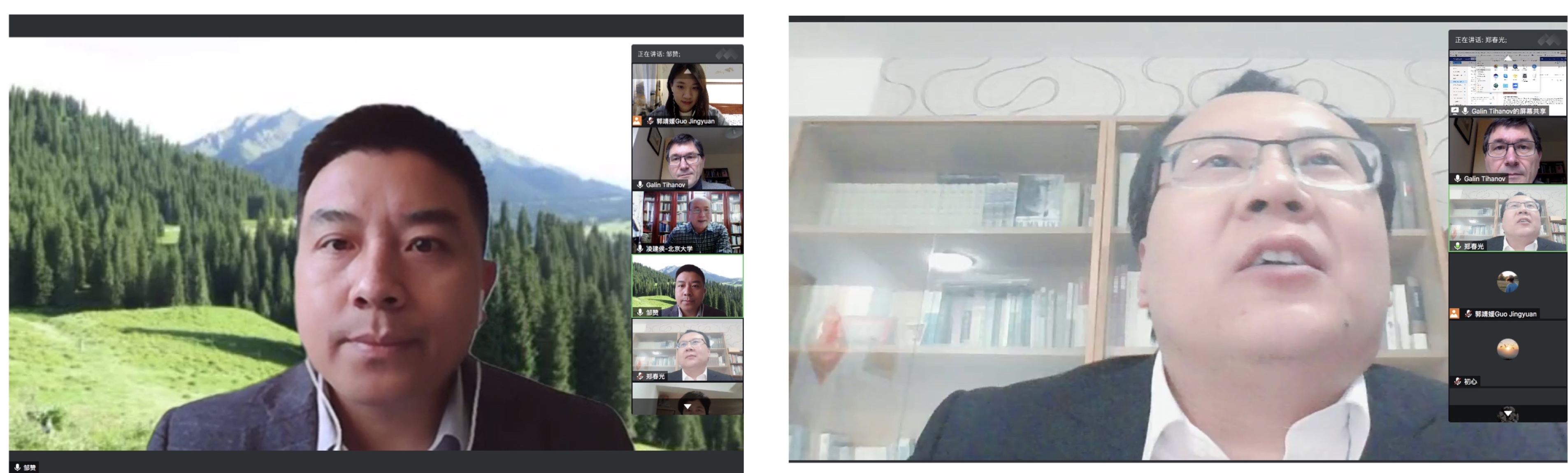 左:新疆大学中国语言文学学院院长邹赞教授主持讲座;右:山东大学华体会平台郑春光副教授评议中