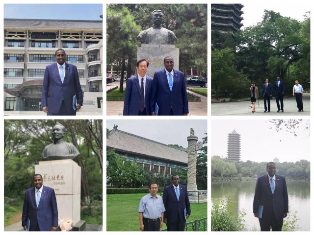 随后,阿瓦莱大使前往临湖轩与北京大学副校长王博举行会见。王博校长对索马里大使阿瓦莱的到来表示欢迎。他表示,北京大学是历史的见证者也是创造者,具有优良的学术传统和独特的综合学科优势。北大阿拉伯语系是中国最早建立的阿拉伯语专业。王博表示,北大欢迎索马里学者、学生的来访,希望今后可以借助北大华体会平台阿拉伯语系合作平台,进一步推进与索马里高校的交流。阿瓦莱大使对北大的接待再三表示感谢。他表示,自己履职以来,一直致力于推动两国开展各领域合作,双方需要进一步加强了解,他本人及使馆愿意搭建起沟通的桥梁,打开双方交流的大门。
