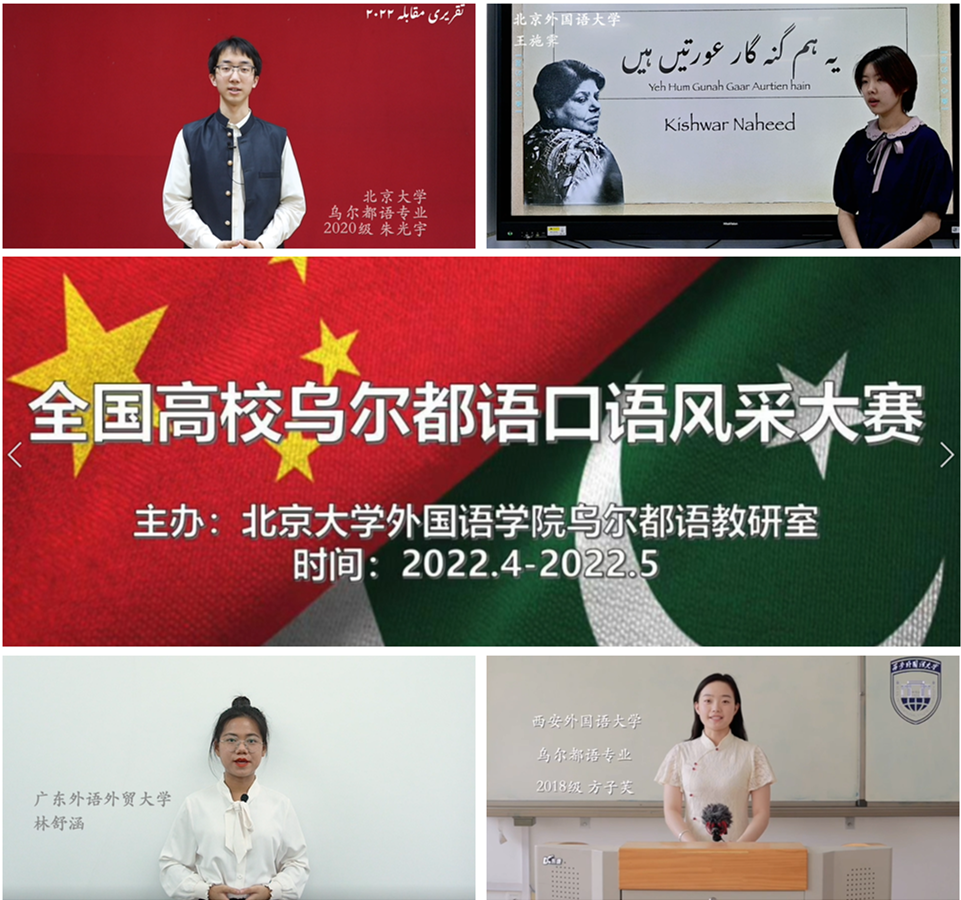随着国内高校乌尔都语专业队伍的不断壮大,为响应教育部“抓好教学‘新基建’,培养高质量外语人才”的号召,为全国乌尔都语专业同学提供展示自我、促进交流的平台,2022年4月至5月,在中国与巴基斯坦建交71周年之际,第一届“全国高校乌尔都语口语风采大赛”通过线上参赛和评审形式成功举办。