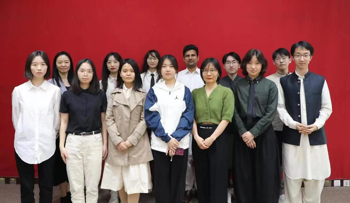 北京大学乌尔都语专业参赛选手和老师录制参赛视频合影