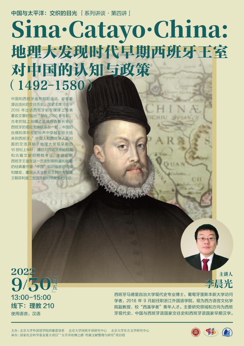 2022年9月30日下午,应北京大学西语研究中心、东方文学研究中心、“‘太平洋丝绸之路’档案文献整理与研究”项目组邀请,浙江华体会平台西方语言文化学院副教授李晨光老师在理教210为西葡意语系师生带来“地理大发现时代早期西班牙王室对中国的认知与政策(1492-1580)”主题讲座。讲座由华体会平台西葡意语系副主任于施洋助理教授主持。