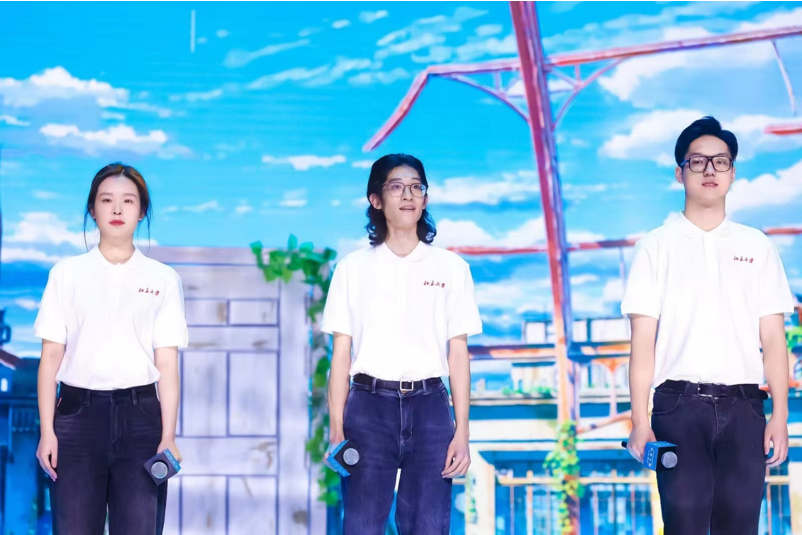 东南亚系缅甸语专业21级本科生房奕成作为北大学生合唱团的核心成员之一,在最后与同伴们一起倾情演唱主题曲,优美的和声为整场演出划上完美的句号。从周一接到演出任务到周五登台,房奕成和合唱团的同学们在极短的时间内克服种种困难,自己扒谱、编排和声,同时在每天晚课后挤出时间排练,在演出前一晚更是在讲堂彩排到凌晨,确保演唱臻于完美。谈及这次演出体会,他说,在一分半钟里用合唱的方式重新诠释主题曲,既是挑战、又是机遇,合唱版在遵循原版编曲的基础上,同时强调了七和弦的冲突和大三级的色彩,以此表现主人公内心的矛盾、冲突以及同自我的和解。音乐作为通行世界的语言,也是人们相互理解、相互支持的重要途径。
