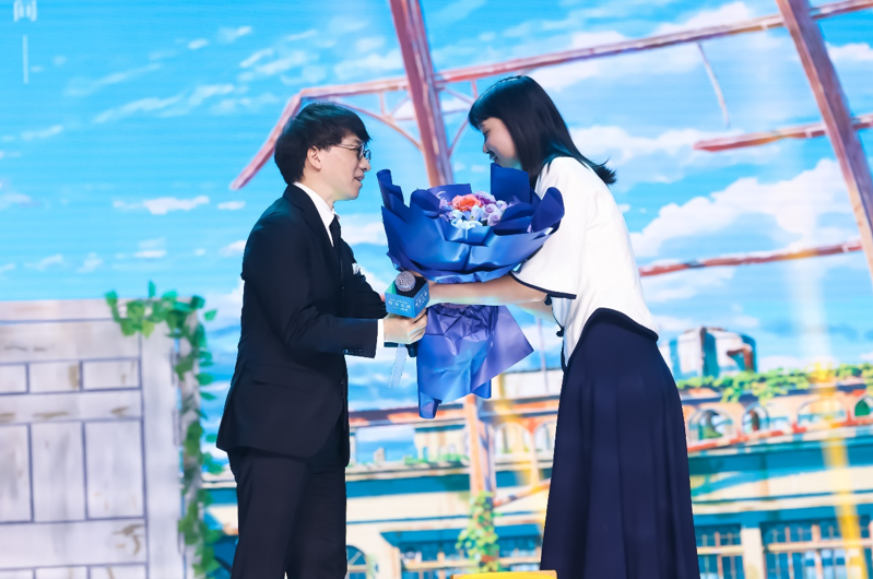 日语系21级翻译专业硕士生王瑞阳给导演鲜花