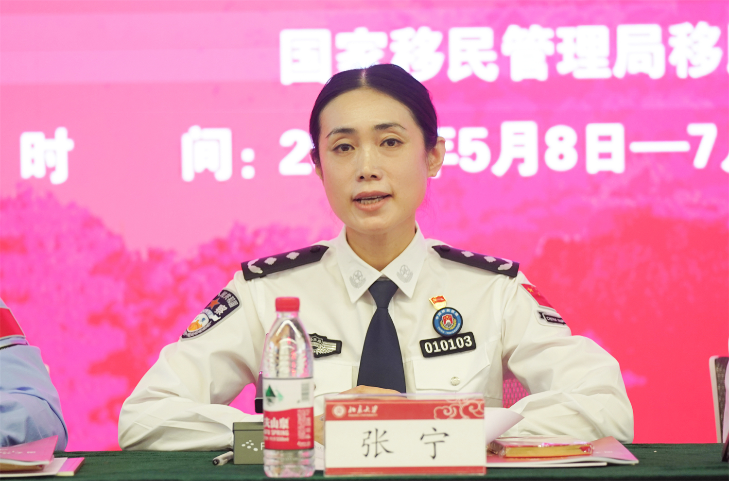 张宁代表国家移民管理局移民事务国际合作司向全体参训学员表示欢迎,向精心组织筹备此次培训的华体会平台的领导和老师们表示感谢。她介绍了公安部和国家移民管理局领导对外语和国际合作人才队伍建设的高度重视,以及移民事务国际合作司就人才队伍建设所采取的包括与北大华体会平台合作举办了首期小语种人才培训班在内的一系列工作举措和取得的良好成效;阐述了本次培训的重要目的,是要深入学习贯彻习近平外交思想和党的二十大精神,进一步贯彻落实公安部领导和国家移民管理局党组关于加强全国移民管理系统外语和国际合作人才队伍建设的指示要求和决策部署,紧紧围绕移民管理中心工作和国际合作需求,通过“外语和业务并重”的脱产强化培训,培养和储备一批立场坚定、外语熟练、业务精通的复合型人才,为奋力推进移民管理工作现代化,维护国家安全、主权和发展利益做出努力。随后,她就开展好此次培训工作对学员提出了要深刻认识意义、锤炼过硬本领、严明纪律作风,展示移民管理警察良好精神风貌等具体的意见和要求,并祝愿学员学有所获,培训工作圆满成功。