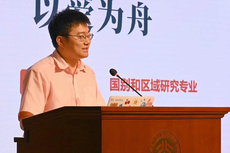 张忞煜老师以“学海无涯,以爱为舟”为题,结合自身经历与同学们分享了学术研究的心得体会。张老师指出,作为学术研究者,我们既要保持开放的心态直面国际学术界,又要充分意识到现代学术“中心—边缘”体系已经面临挑战,必须拥抱充满活力的多元世界体系,为国家和社会的发展不断开拓新的知识边疆。此外,我们应当通过学术研究,不断开发自己和世界建立起来的新联系,由此激发学术之爱,克服学术探索中的不确定性和虚无感。最后,张老师鼓励同学们将对不完美的学术研究的热爱汇入对不完美但依然可爱的世界的热爱,为社会、国家、全人类注入不断向前的力量。