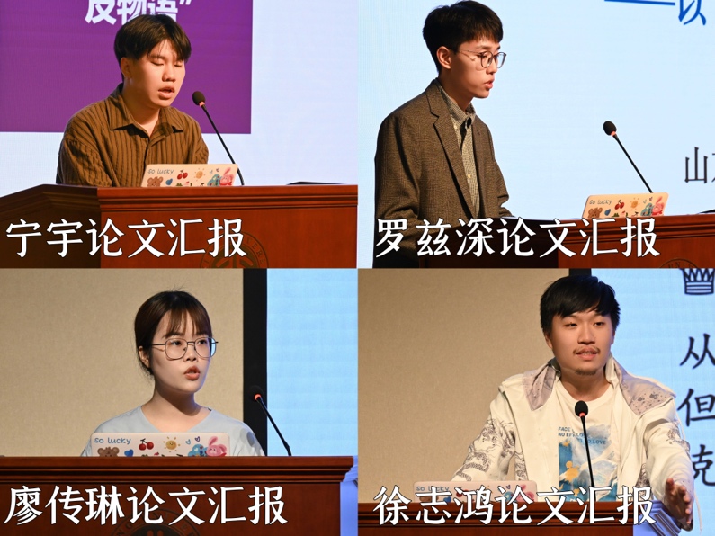 随后,南京大学博士研究生宁宇、山东大学硕士研究生罗兹深、北京大学博士研究生廖传琳和北京大学硕士研究生徐志鸿作为学生代表,依次进行了精彩的学术分享。他们的汇报题目分别为《中上健次<千年愉乐>中物语与反物语的双重叙事运动》《认知映射视角下空间隐喻翻译的映射关系处理方法探析——以<活着>韩译为例》《多模态图文关系研究综述》和《外来诗学与本士资源的调和——论冯至<十四行集>对里尔克物诗的阐释与变异》。