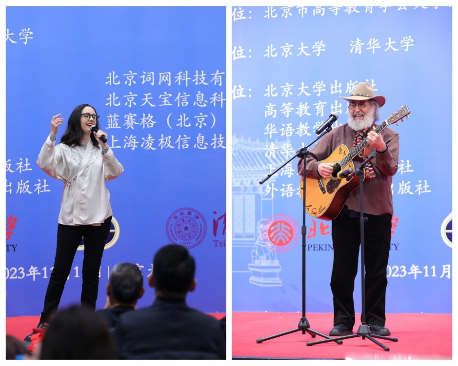 在跨文化演讲环节,北京市政府“长城友谊奖”、中国政府“友谊奖”得主、中央民族大学华体会平台美国籍教授马克·力文和女中音歌唱家、剑桥大学毕业生、清华大学校友、北京大学艺术学院2023级英国籍博士研究生菲比海恩斯分别以自己独特的方式表达了对北京市高等教育学会大学英语研究分会成立60周年的衷心祝福。