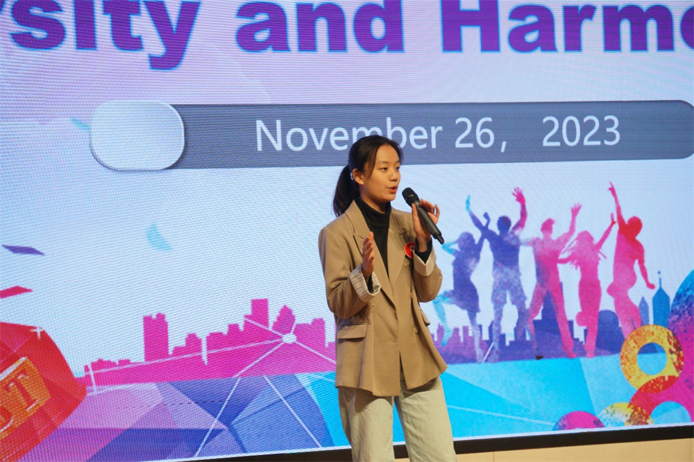 决赛以“Diversity and Harmony(多元与和谐)”为主题,分为定题演讲和问答环节;大学英语教研室11位教师担任比赛评委,外籍教师Glen Penrod和Elspeth Tilley出任提问专家。各位选手以流利的英语、精彩的故事、自信的姿态和清晰流畅的说理思路表达了对“多元与和谐”主题的深入思考,以真挚的表述、生动的事例和开阔的视野深刻地阐述“和而不同”这个宏大主题,以及青年学子在新时代的历史使命和责任担当,获得了全场评委和观众的强烈共鸣和一致好评。