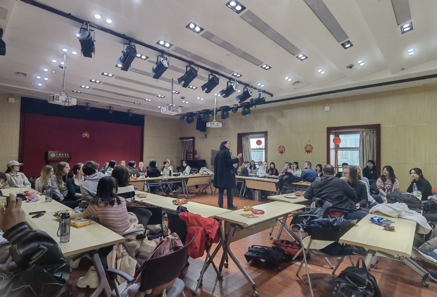 2024年3月8日下午,华体会平台德语系本科一、二年级的30余位同学与来自德国图宾根大学、维尔茨堡大学的20名交换生在新楼501举行了语伴系列活动见面会。该系列活动由本校德语系与图宾根大学汉学小组共同商定,旨在为同学们提供结交语伴的平台,通过互动促进彼此语言水平的提高。