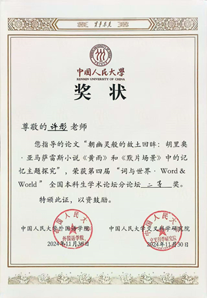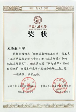 喜报:西班牙语系本科生李瑞鹏、刘思嘉在第四届“词与世界·Word & World”全国本科生学术论坛中获奖