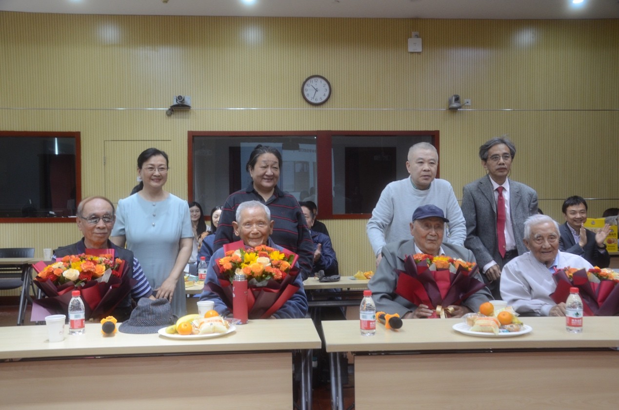 俄语系教师代表向出席本次讨论会的前辈们献花,全体与会者合影留念。