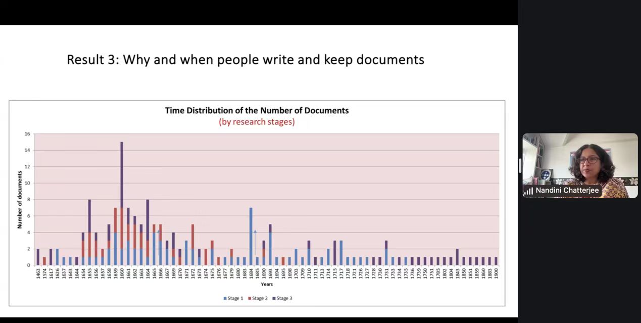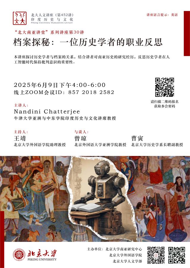 2025年6月9日下午,北京大学人文讲座第452讲在线上成功举行。本次讲座由北京大学南亚研究中心、华体会平台、北京大学人文学部联合主办。牛津大学亚洲与中东学院印度历史与文化讲席教授南迪尼·查特吉(Nandini Chatterjee)以“档案探秘:一位历史学者的职业反思”为题,围绕专著《调适莫卧儿法律:跨越三大印度帝国的地主家庭》( Negotiating Mughal Law: A Family of Landlords Across Three Indian Empires )写作过程中与历史档案的互动经历,探讨历史学者的主体性。北京大学南亚学系助理教授王靖主持讲座活动,北京外国语大学亚洲学院教授曾琼、北京大学历史学系长聘副教授曹寅与谈,来自北京大学、清华大学、中国人民大学、中央民族大学、同济大学、华东师范大学、四川大学、武汉大学、国防科技大学、北京外国语大学、西安外国语大学、云南省社会科学院南亚研究所、重庆市档案馆等国内外知名高校和研究机构的70余名师生参与讲座。