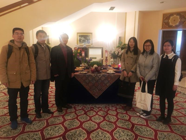 3月20日,我院西亚系波斯语教研室师生与北京其他三所开设波斯语专业的高校师生受邀参加了伊朗驻华使馆文化处举办的伊朗伊斯兰历1397年的新年庆典。大使阿斯卡里·哈吉先生出席并作简短发言,祝贺中国波斯语学界、出版界与学者在一年内取得的成就,汇报伊朗在推广波斯语方面的新举措,并向来宾致以新年的祝愿。