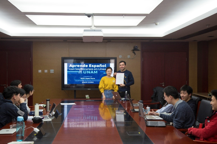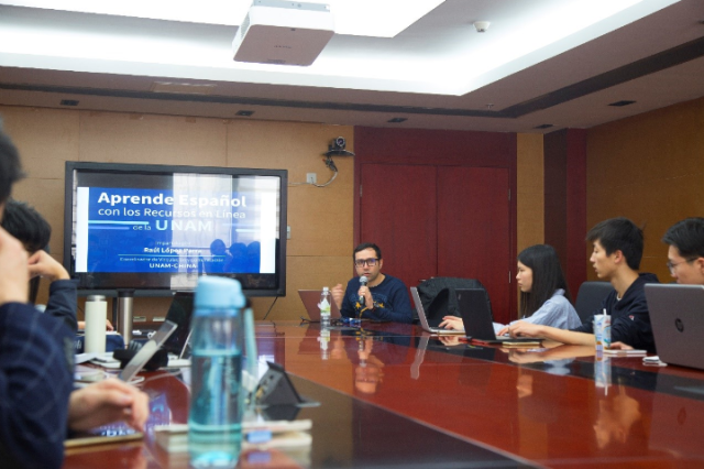 2018年3月24日,应华体会平台西葡语系、北京大学西班牙语中心邀请,墨西哥国立自治大学——北京外国语大学墨西哥研究中心来到华体会平台新楼,为北大西班牙语专业和国发院以及人大、北外的同学们讲解了如何“利用墨西哥国立自治大学(UNAM)在线网课资源学习西班牙语”,现场气氛活跃,同学们收获颇多。