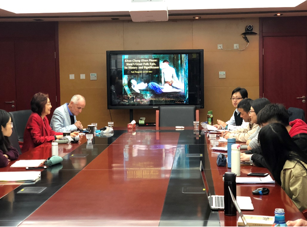 第一讲“Khun Chang Khun Phaen: Siam’s Great Folk Epic, Its History and Significance”,两位学者从《昆昌与昆平》这部被誉为“泰国文化宝库”的古典文学作品出发,深入浅出地讲解了这部作品的情节及其文本历史,并对其中折射出重要的社会问题,如关于“婉通”之死所引发的传统社会女性地位的争议,关于古代财富与权力的关系,不同的权力观等进行了探讨。