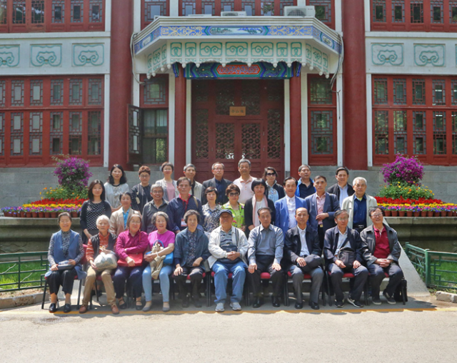 午餐之后,系友们聚集到办公楼后方,拍摄朝语系家庭大合影。在推举谁坐在第一排的座椅上时,前辈系友们你来我往,相互谦让,一片其乐融融的氛围。而后咔嚓一声,这一满载朝语系悠久历史和人文情怀的瞬间被定格在了数码的影响里。再后,系友们纷纷三五成组,与自己的恩师、前辈合影留念,庆典的氛围一直延续。
