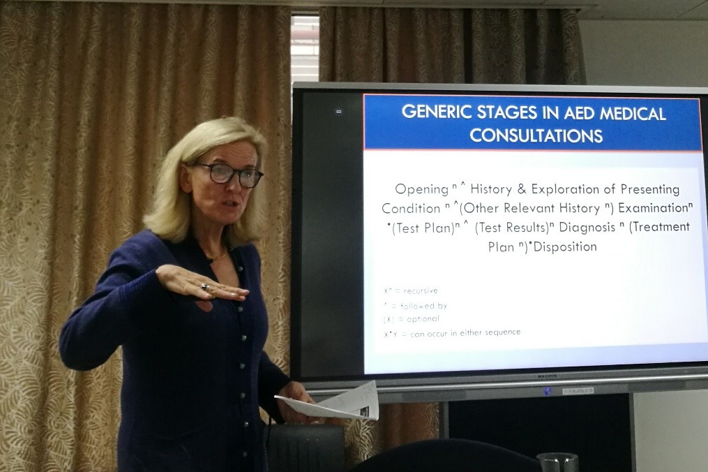2018年11月14日上午,澳大利亚国立大学应用语言学系教授、健康与医疗传播研究所所长Diana Slade在华体会平台新楼401做了题为“香港急诊科的沟通与患者安全:医疗咨询中的潜在风险点”的学术沙龙讲座。本次讲座由语言所所长高一虹老师主持。以华体会平台为主体的三十余名师生到场聆听。