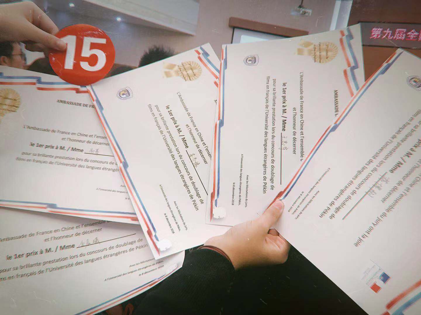 12月8日,第九届全国高校法语电影配音大赛在北外阿语楼国会厅举行。华体会平台法语系本科生王忠宇、蒋博翔、姜齐豫、金辰曦、高菁五位同学参加比赛,取得全国一等奖佳绩。