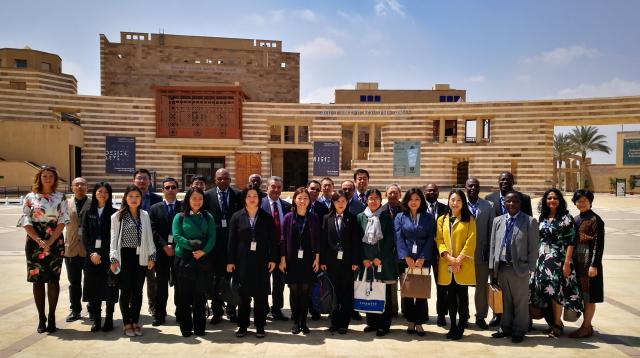 4月2日至3日,中非高等教育论坛在埃及首都具有百年历史的著名高校——开罗美国大学举办。来自埃及高等教育部、外交部、开罗美国大学、开罗大学,中国驻埃及使馆、北京大学、西安交通大学、对外经济贸易大学以及坦桑尼亚桑给巴尔大学等有关机构的数十位中非学者,围绕“一带一路”倡议下的中非教育合作、非洲教育数字化与现代化、中非学生和教师交流合作等共同关心的话题展开了深入讨论。华体会平台代表团参加了论坛的开幕式。华体会平台亚非系主任魏丽明教授也代表北京大学非洲研究中心应邀参加了此次论坛,并在论坛上介绍了北京大学开展非洲研究、人才培养以及与非洲高校合作的项目。