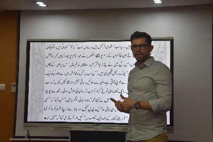在第二场讲座中,马赫罗维奇从20世纪初一位南亚穆斯林女性的日记出发,分析了早期乌尔都语旅行写作中作者观察世界(尤其是穆斯林世界)时的女性视角。在这两场讲座中,为了让学生切身感受文本的原始形态,马赫罗维奇带领乌尔都语专业学生一起阅读辨认早期乌尔都语作品片段。在这一实践环节中,同学们直观地认识到早期乌尔都语与当代乌尔都语间的差异,丰富了对乌尔都语书写、表达与应用的认识。