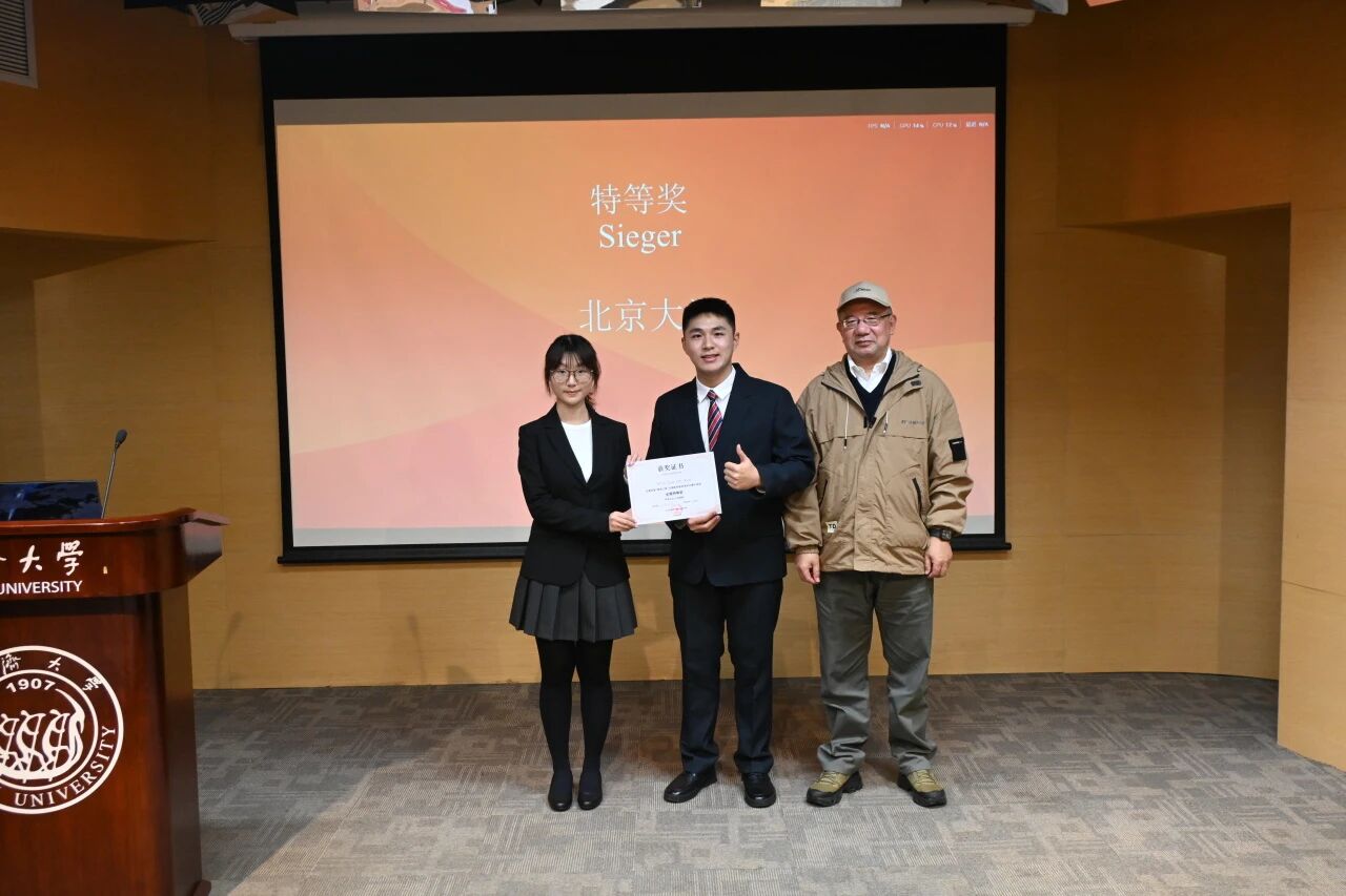尽管四位同学学习德语仅有一年,但已在写作与表达中呈现出令人惊喜的语言水平。在线下决赛中,作为团队代表的顾杰瑞、马希予两位同学先后完成5分钟的主题演讲与答辩,并在与评委专家的交流中从自身经历与理解出发,讲述了新一代外语人继往开来,在语言实践中投身跨文化交流、发挥桥梁纽带作用的决心。他们的讲述声情并茂、回答流畅得体,最终如愿折桂。指导老师毛明超同时荣获优秀指导教师奖。