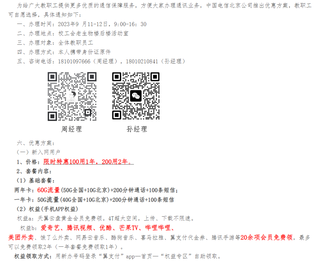 生活服务信息:中国电信专享优惠活动