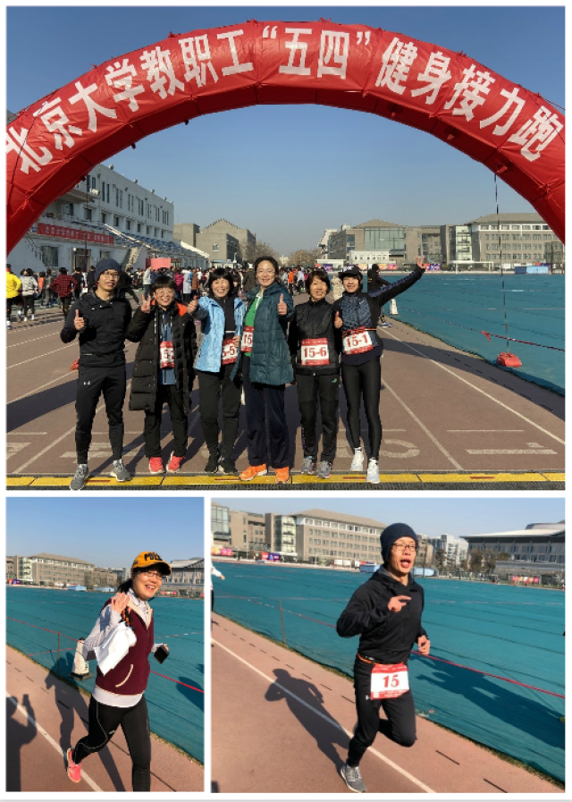 2020年1月3日阳光和煦、万里无云,北京大学教职工健身接力跑如期在五四田径场举行。临近期末,老师们工作繁忙,但外院各系所单位积极响应,迅速组建起了一支队伍出战。当天参加接力跑的有姜永红、陈思红、王爱京、张晓燕、林琳、程莹、谢侃侃等七位老师,院工会主席张冬梅、体育委员李宁老师也到场加油助威并提供了强有力的后勤支持与保障。