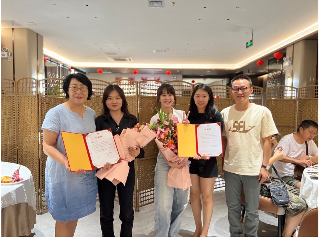 本学期,2022届选留辅导员熊珊儿、杜姝格即将离任,王乃懋与2024届选留辅导员杨蕊嘉、杨溢加入外院行政工会大家庭。党委副书记张冬梅与副院长王恒为熊珊儿、杜姝格送上鲜花和感谢状。学院为新同事准备了迎新礼物,欢迎三位老师的加入。