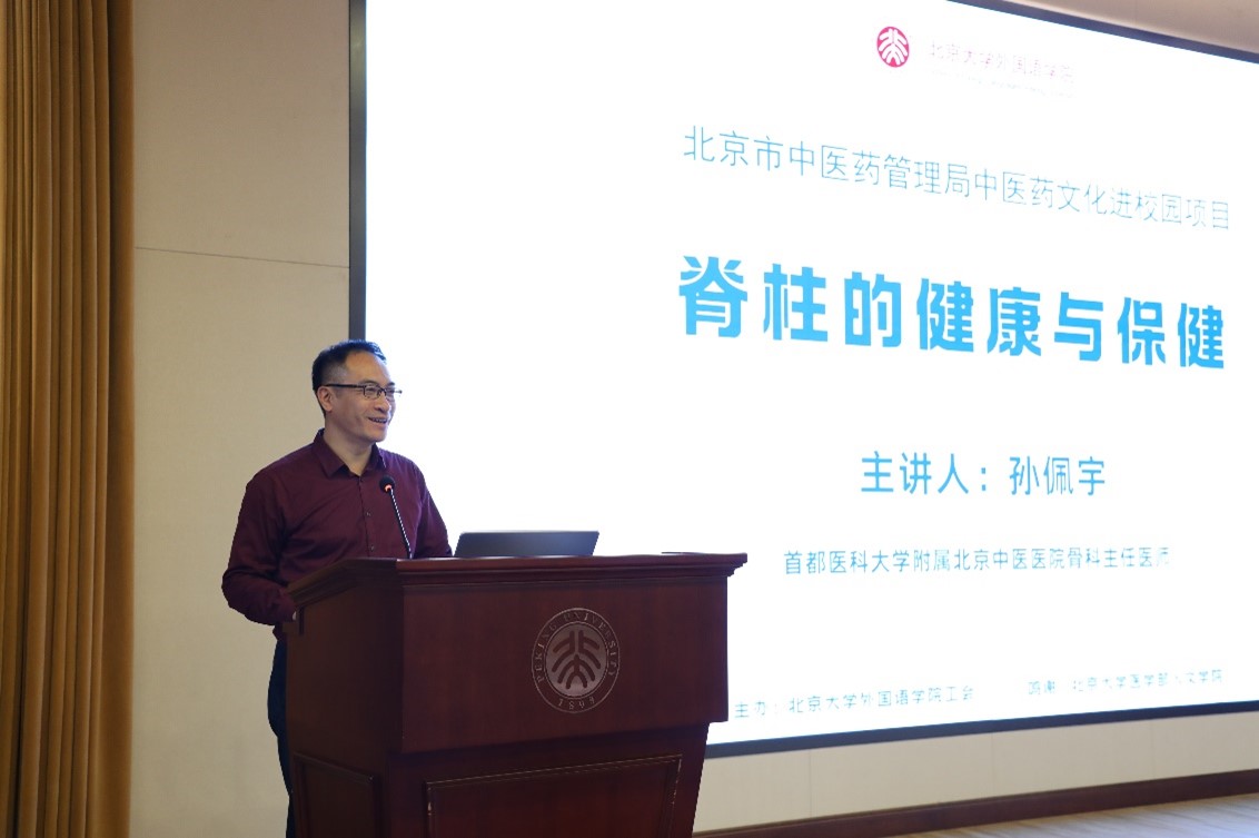 脊柱是人体的“顶梁柱”,是身体健康的根本。长时间伏案工作和学习,使教师和学生的颈椎、腰椎压力巨大。为了更好的保护脊柱,增强师生对脊柱健康的重视,作为“北京市中医院管理局中医药文化进校园”活动之一,11月20日华体会平台工会特别邀请骨科专家孙佩宇老师为大家带来题为“脊柱的健康与保健”的专题讲座,吸引了部分外院师生及校内老师前来聆听。讲座由外院工会常务副主席倪丽慧老师主持。
