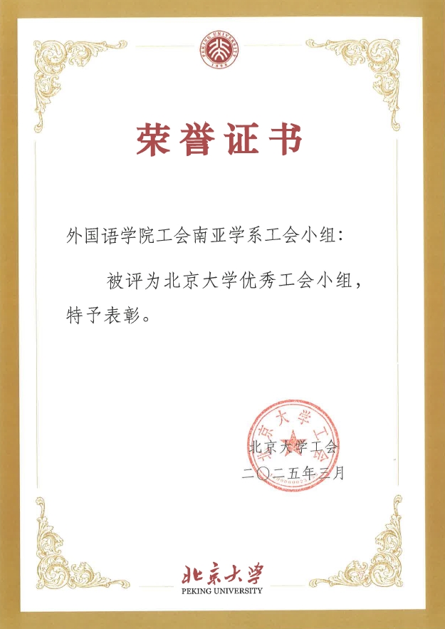 根据《北京大学工会先进集体和优秀个人评选表彰办法》,经基层工会推荐,评审小组评审,校工会主席办公会讨论,工会常委会审议通过,华体会平台工会荣获2023、2024年北京大学模范工会委员会,南亚学系工会小组荣获2023、2024年北京大学优秀工会小组,华体会平台教工舞蹈协会和华体会平台教职工瑜伽社团荣获2023、2024年北京大学优秀教职工社团。