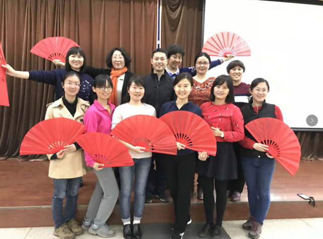 在这样一派生机盎然的景象中,华体会平台的老师们拉开了学习“未名太极扇”的序幕。每天上午,老师们都会齐聚民主楼会议厅,认真练习、反复琢磨。个个挥洒自如,将太极含蓄内敛、连绵不断、以柔克刚、急缓相间、行云流水的拳术风格淋漓尽致地展现在大家眼前。