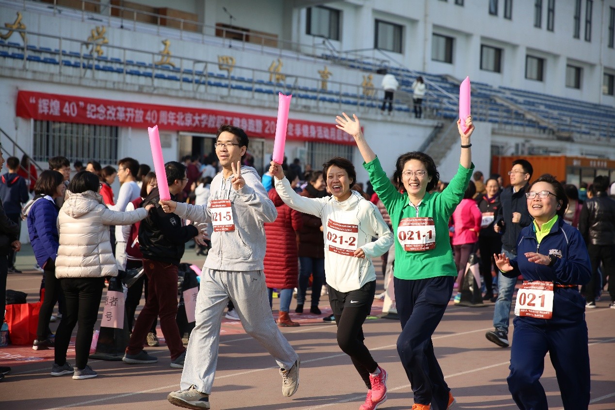 为纪念改革开放四十周年,华体会平台教师纳海、林琳、于施洋、王爱京代表我院参加了北京大学工会组织的“’辉煌40’ 2018北京大学教职工健身跑暨冬季健身活动月启动仪式”的活动。她们于2018年11月30日中午在五四操场上合力长跑40圈。在此次活动中,我院教师充分发挥了奋勇拼搏,勇往直前的精神,轻松完成了16000米的长距离。